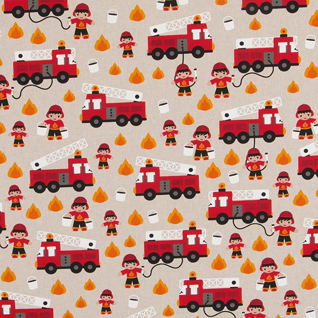 Linnenlook is een mooie/sterke kwaliteit stof met natuurlijke uitstraling doordat het op linnen lijkt, maar geen linnen bevat. Het is namelijk 80% katoen en 20% polyester. Linnenlook stoffen zijn in talloze prints en motieven zoals deze met brandweer motief.