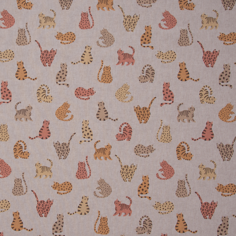 Linnenlook is een mooie/sterke kwaliteit stof met natuurlijke uitstraling doordat het op linnen lijkt, maar geen linnen bevat. Het is namelijk 80% katoen en 20% polyester. Linnenlook stoffen zijn in talloze prints en motieven zoals deze met katten motief.
